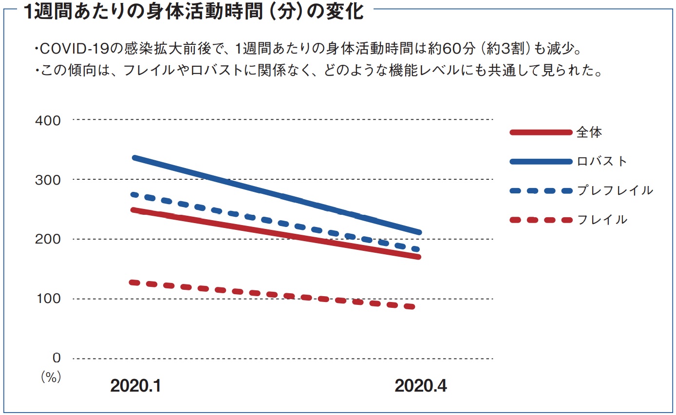 つまり、「ステイホームで、不要不急の場合以外は、出歩かない」「人と会わない、会話をしない」など、高齢者にとっては、フレイルやサルコペニアのリスクを高める生活習慣が奨励されることとなった。