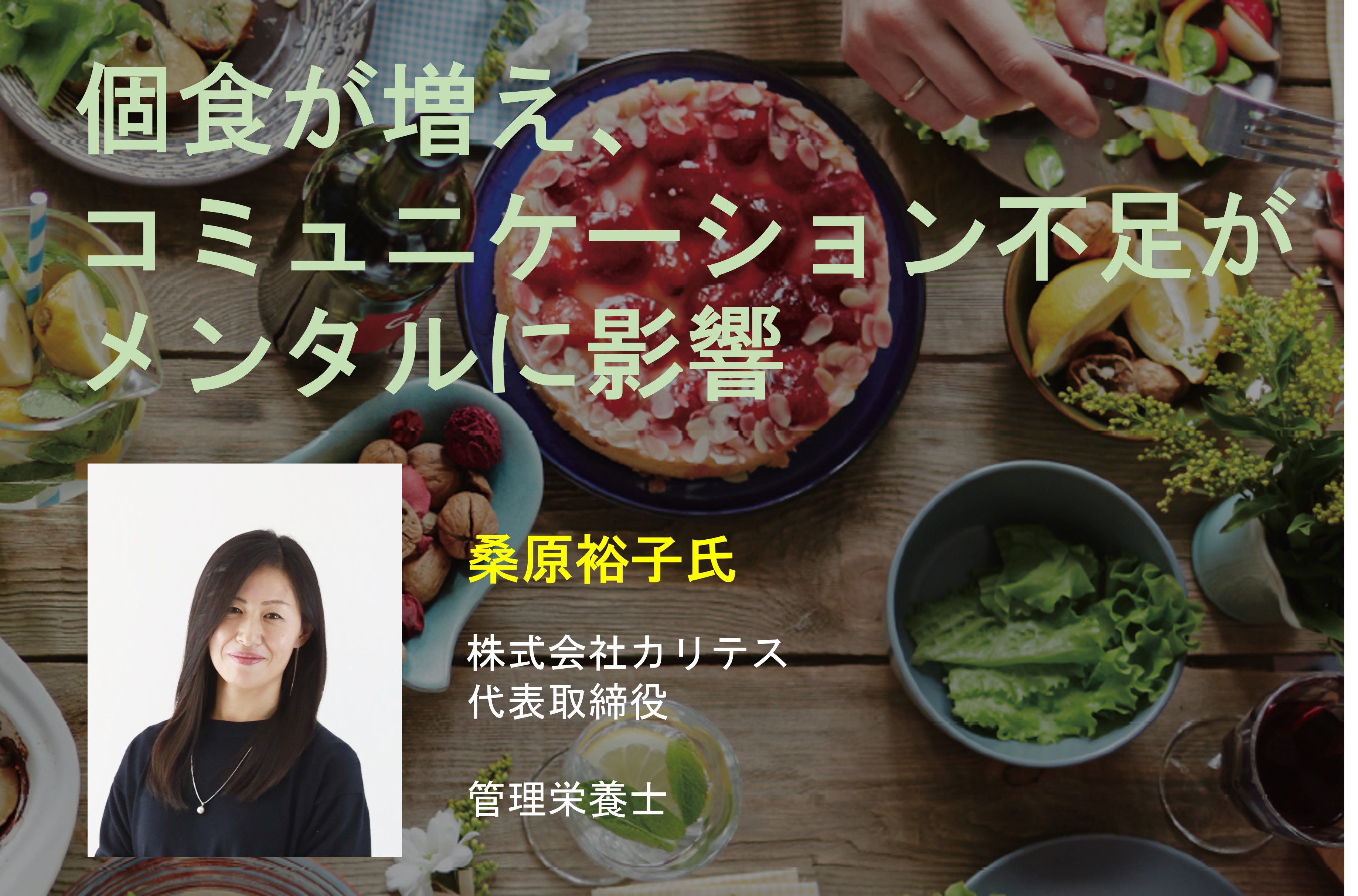 管理栄養士として、トップアスリートから一般生活者までの食事指導を行っている桑原裕子さんが、コロナ禍がメンタル機能低下に及ぼす影響として懸念しているのが、行動制限で「個食」の機会が増えたこと。