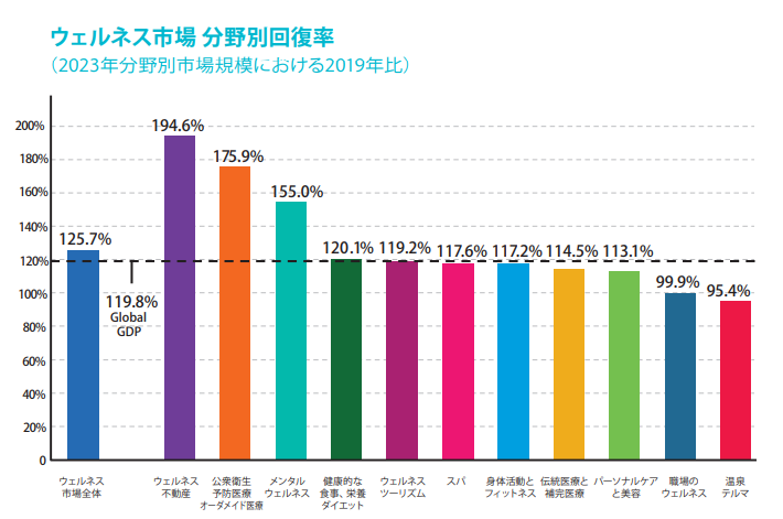 世界の成長に伴い、健康的な心身の維持がますます求められています。『レジャー白書2024』によると、余暇重視派は2009年の50.5%から2023年には65.7%に増加しています。これに対応して、事業者はウェルネスをテーマに新しい余暇サービスを提供しています。日本では「国内観光旅行」が増加し、ウェルネスツーリズムやスパに関連するサービスも人気です。健康を目指す体験型サービスの需要は、先進国全体で見られる傾向です。