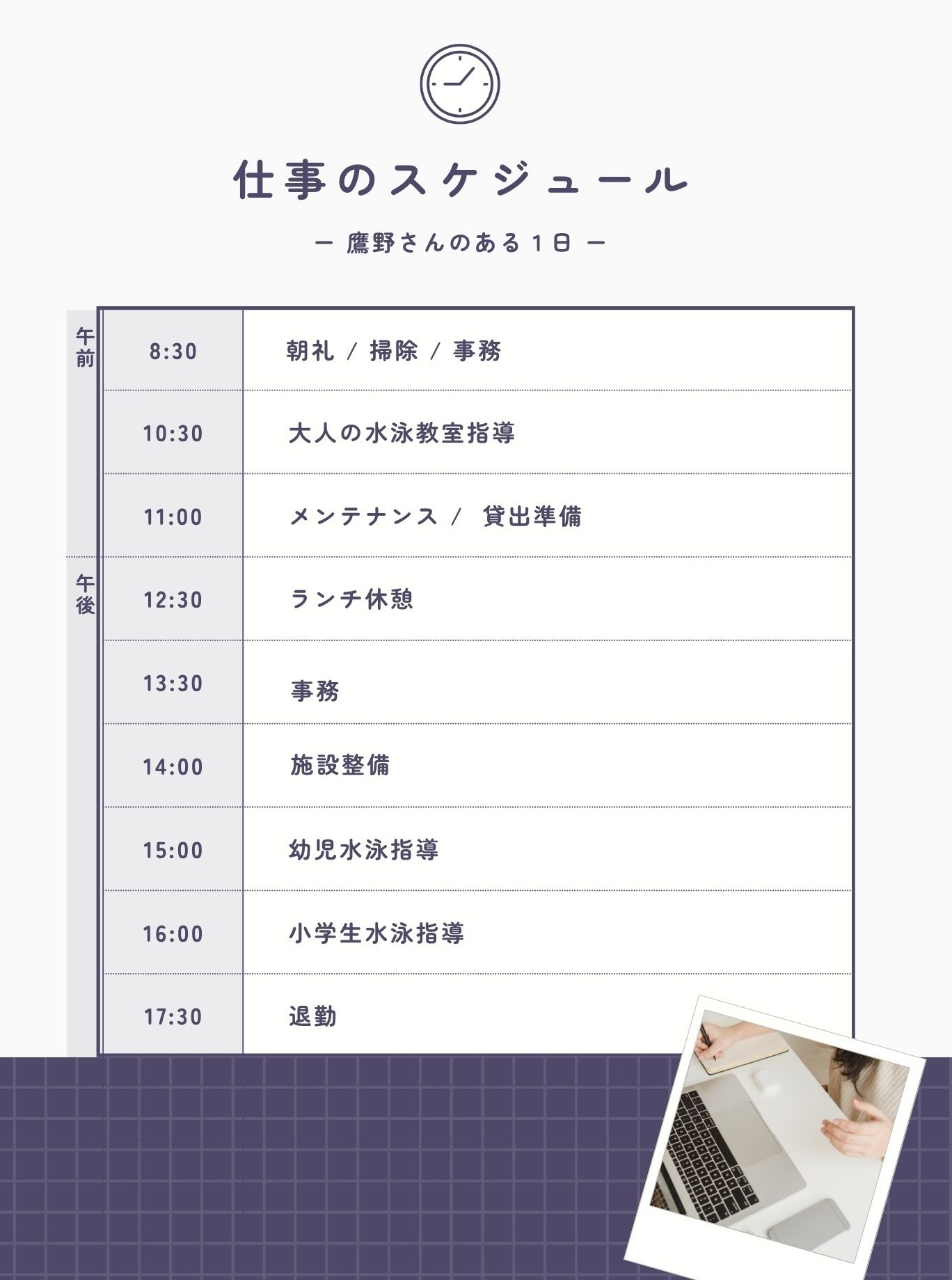 さらに、施設管理業務と指導業務の両方に携われる点も、私の志向と一致していました。「指導だけでなく、幅広い業務に関わりたい」という想いが叶う環境だったのです。