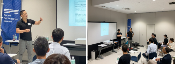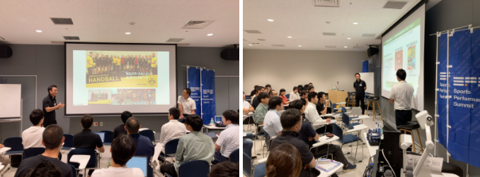 ハイパフォーマンススポーツセンター国立スポーツ科学センター研究員山下大地氏にご登壇いただきました。講義内では協賛企業の株式会社フォーアシスト様による実演も行いました